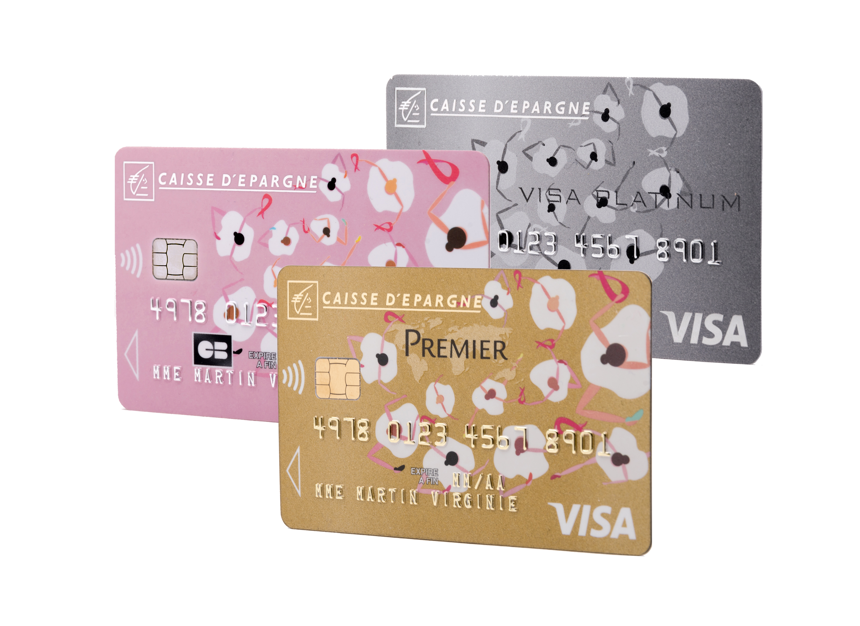 Cartes bancaires en édition limitée Caisse d’Epargne décorées par la Maison Repetto au profit de l’association Le Cancer du Sein, Parlons-en !