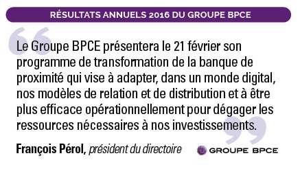 Le Groupe BPCE présentera le 21 février prochain, en amont de son futur projet stratégique 2018 – 2020, son projet de transformation de la banque de proximité. »
