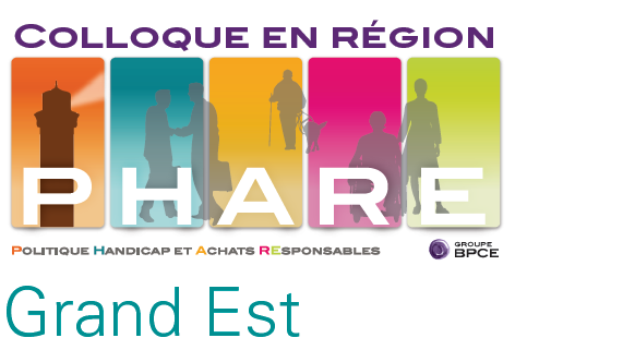 Visuel du Colloque PHARE Grand Est, le 25 avril 2017 à Metz. Cet événement consacré à la Politique Handicap et Achats Responsables (PHARE) a présenté les engagements en matière de développement économique et social local des cinq banques régionales du Groupe BPCE du Grand Est : Banque Populaire Alsace Lorraine Champagne, Banque Populaire Bourgogne Franche-Comté, Caisse d’Epargne Alsace, Caisse d’Epargne de Bourgogne Franche-Comté et Caisse d’Epargne Lorraine Champagne-Ardenne.