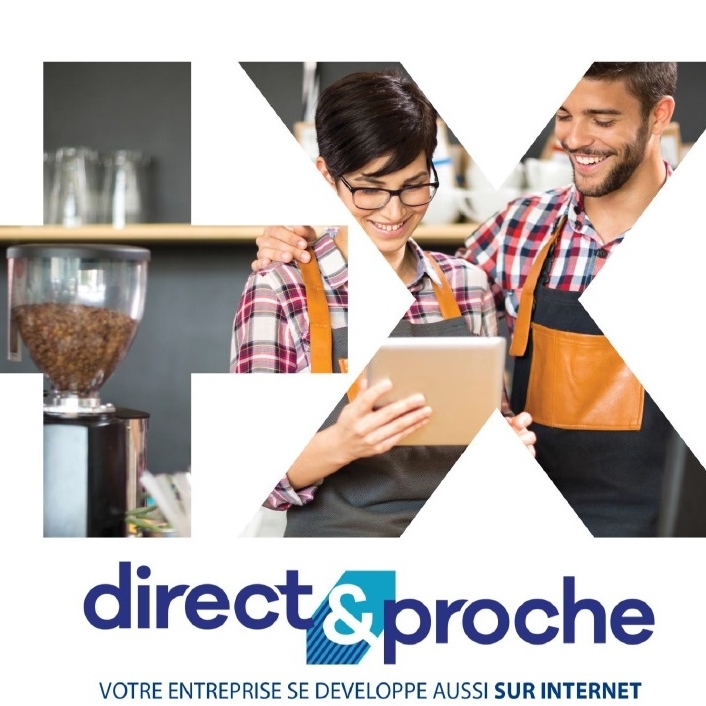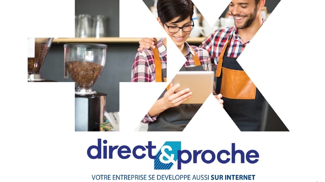 Visuel promotionnel Direct & Proche de Banque Populaire, mettant en avant l'accompagnement digital des professionnels pour développer leur entreprise sur Internet.