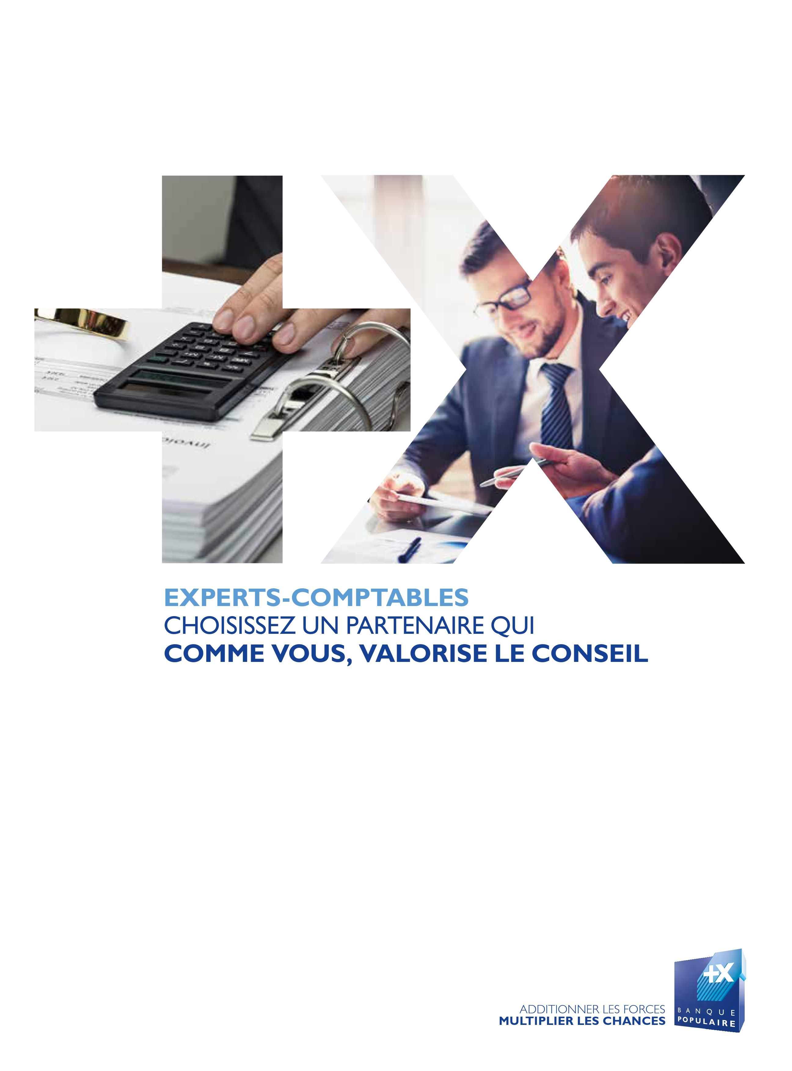 Visuel promotionnel Banque Populaire dédié aux experts-comptables, mettant en avant le partenariat et la valorisation du conseil professionnel.