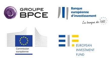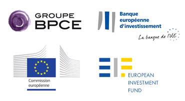 Logos institutionnels du Groupe BPCE, Banque européenne d'investissement, Commission européenne et European Investment Fund.