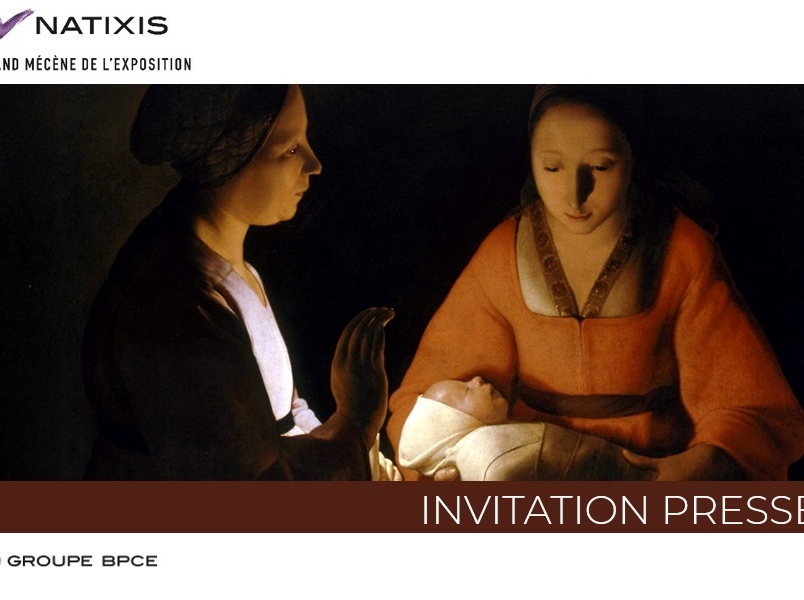 Visuel d'invitation presse pour l'exposition Georges de La Tour, soutenue par Natixis en tant que grand mécène, illustré par une œuvre emblématique du peintre.