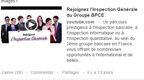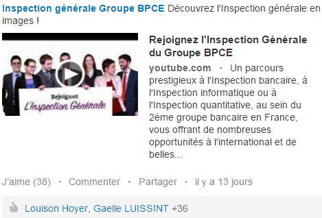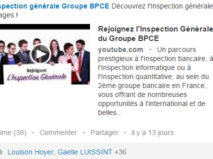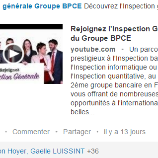 Visuel de campagne LinkedIn pour le recrutement à l’Inspection générale du Groupe BPCE, invitant à découvrir ses métiers en vidéo.