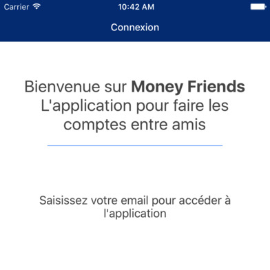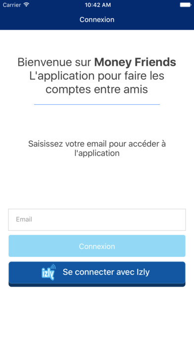 Écran d’accueil de l’application Money Friends de Banque Populaire, facilitant la gestion des comptes entre amis avec une connexion possible via Izly.